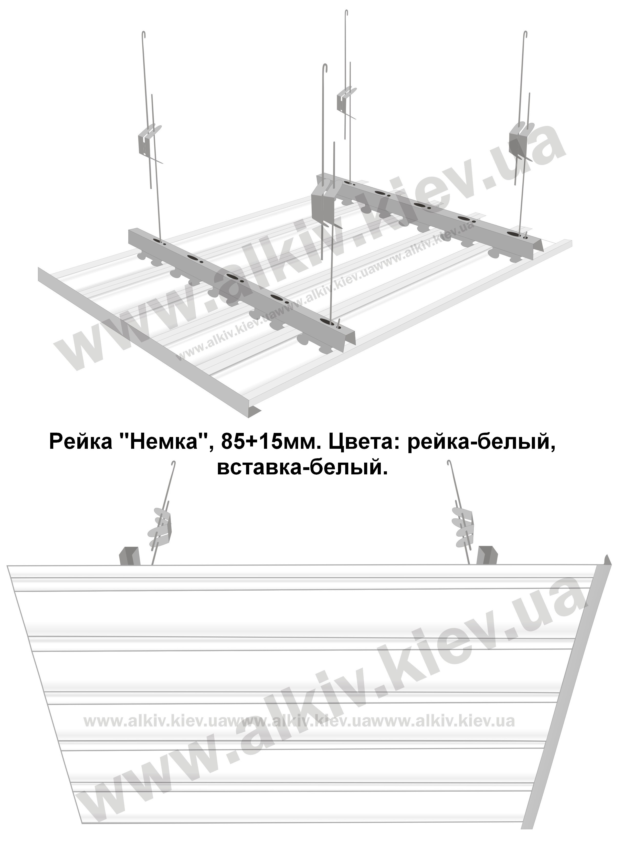 Реечный потолок БЕЛЫЙ 85мм, вставка БЕЛЫЙ 15мм АЛЮМ Киев