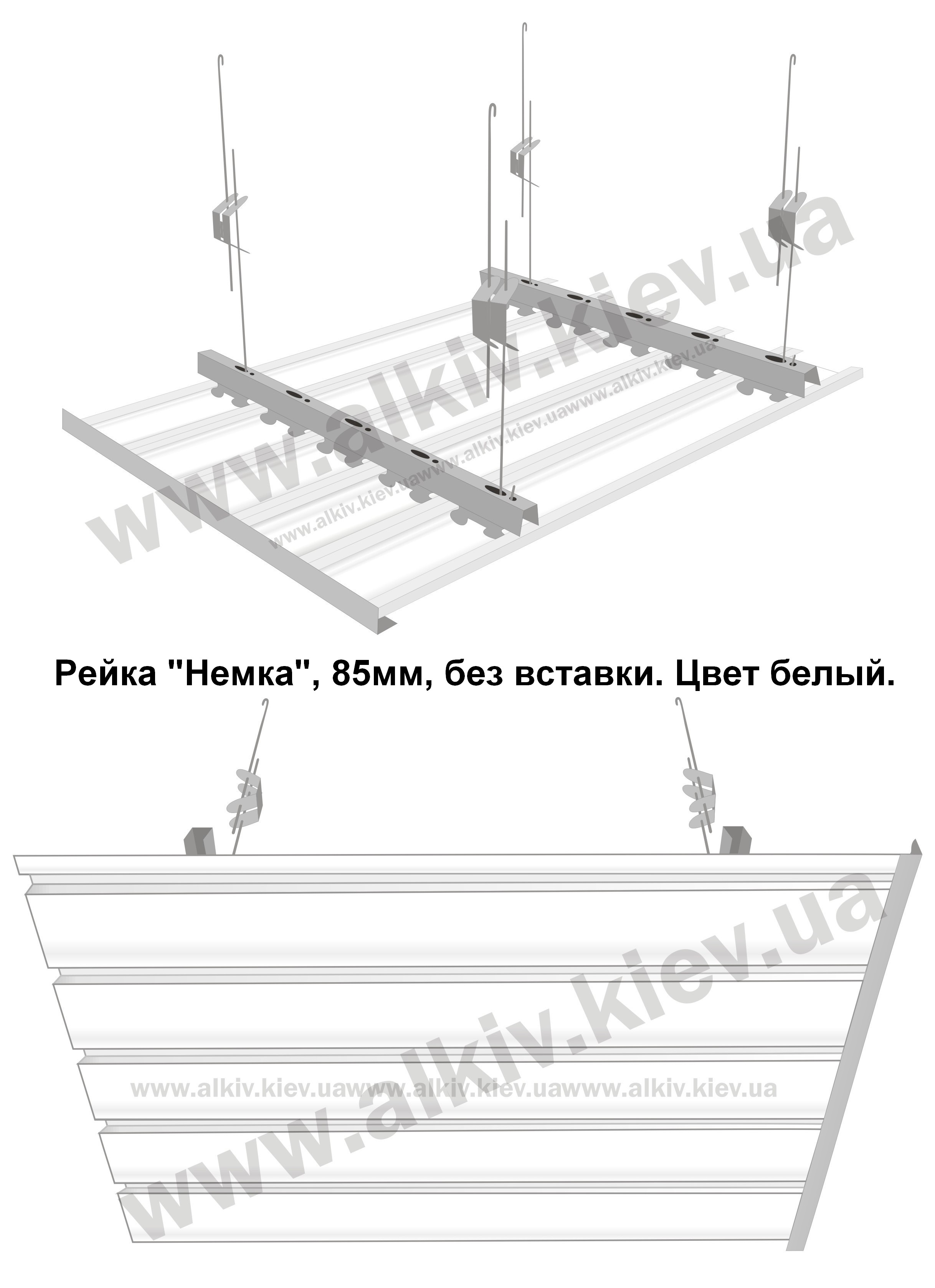 Реечный потолок БЕЛЫЙ 85мм, закрытого типа АЛЮМ Киев
