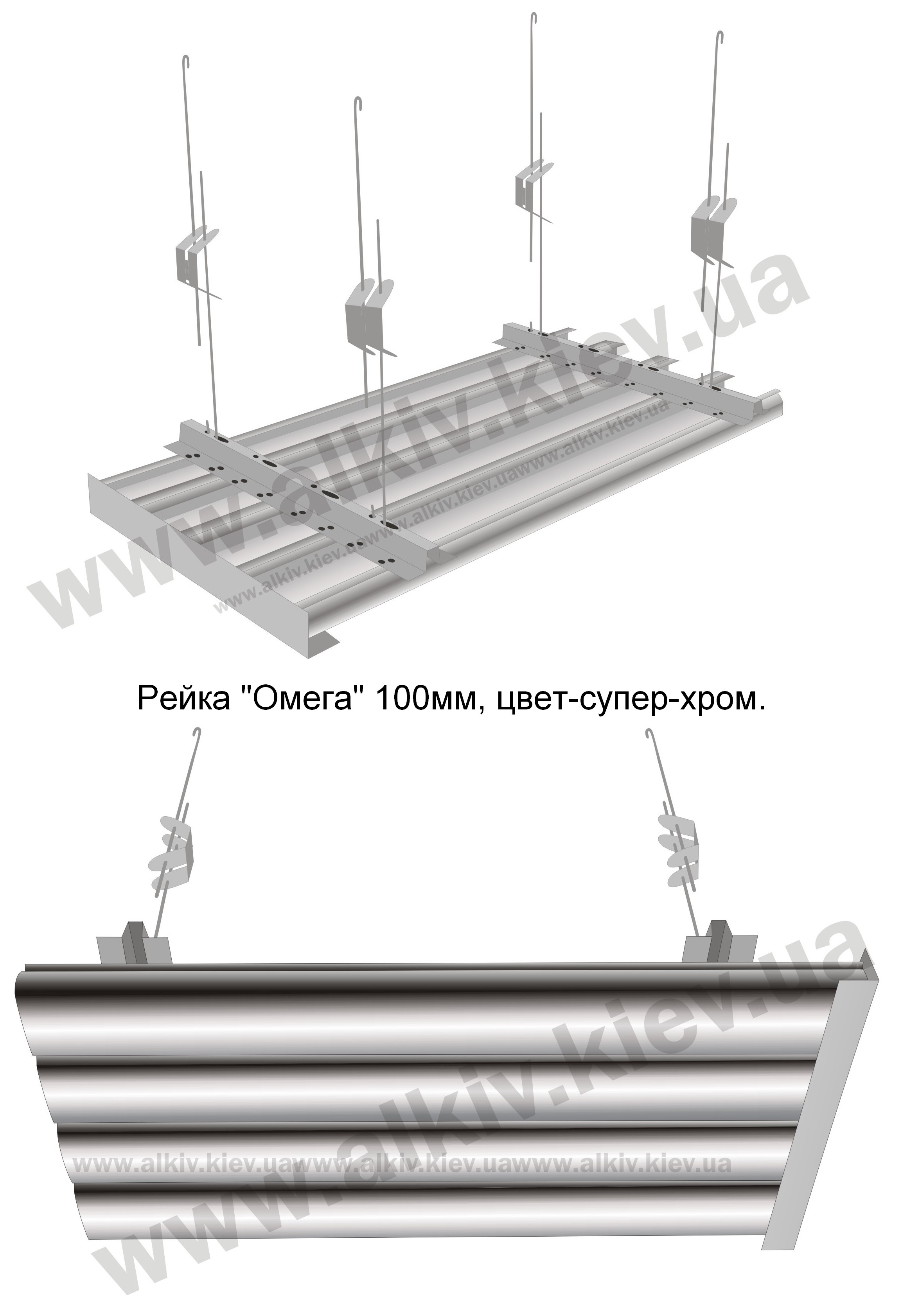 Реечный потолок СУПЕР-ХРОМ 100мм АЛЮМ Киев